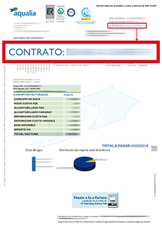 Puede localizar su número de contrato en una factura de suministro de agua. Tiene que cumplimentarlo con el mismo formato que aparece en la factura.
